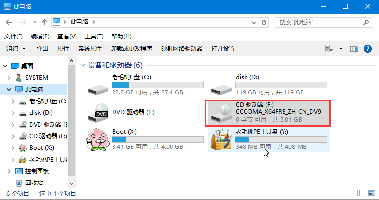- 镜像去东区分区:F盘(这是在步骤六–第1步做的,忘了的看看前面)